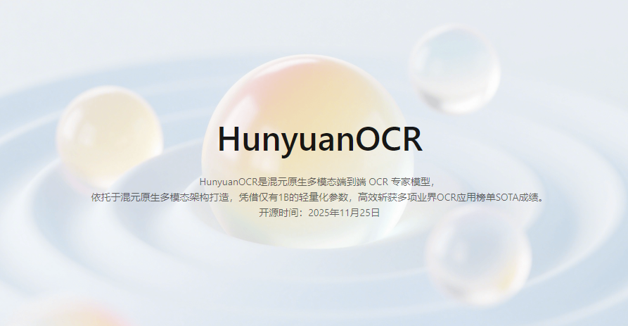 腾讯混元于2025年11月25日正式开源其端到端OCR专家模型——HunyuanOCR。该模型基于混元原生多模态架构,仅以1B(十亿)参数的轻量化设计,在多项OCR应用评测中斩获SOTA(最先进水平)成绩,涵盖复杂多语种文档解析、卡证字段提取、视频字幕识别等场景。本文将深入解析HunyuanOCR的技术架构、核心能力、应用场景及与同类产品的对比,帮助开发者与企业快速掌握这一领先的OCR工具。