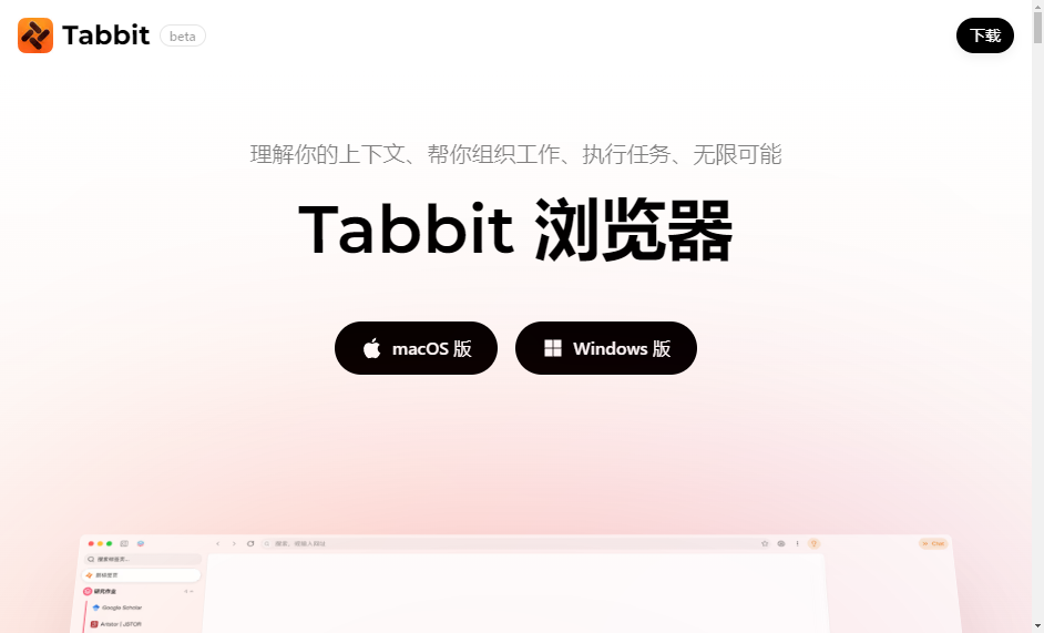 访问官网:https://www.tabbit-ai.com 下载对应平台的安装包。